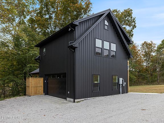Wow! This 2024 build modern home on 11 acres is perfect for lake lovers, developers, outdoor enthusists and STR owners. The private parcel backs up to hundreds of acres of COE property with permitted lake path providing swimming, fishing or kayaking access. Downstairs the modern home has family room with built in bunkbeds, half bath, and concrete patio perfect for listening to creek with outdoor shower and fire pit area.. The upstairs has living room open to kitchen, bedroom, loft, laundry, and full bath. Plenty of room to escape on the 11 acres to add another home or develop. This is not in an HOA so AIRBNB is allowed. With a few ponds, barn for boat and lake toys and plenty of privacy close to Nolin Lake State Park and Mammoth Cave NP there is nothing like this available! Owner/Agent