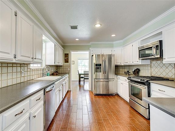 Location is impeccable! Close to lots of shopping, schools, and only 20 minutes to downtown OKC. Beautifully updated kitchen with ALL appliances staying! Stainless steel fridge, dishwasher, and gas range. Even the washer and dryer stay! New hardwood floors throughout make the living space feel warm and open. The newly restored back deck overlooking the creek and greenbelt is going to be perfectly relaxing on a cool fall afternoon. The kitchen is suitable for cooking large meals with friends and family. The layout is well suited for children or guests. With the master having its own wing separate from the other three beds and bath. The corner lot boasts a huge front yard and the neighborhood park creates a great community vibe. With so many amenities provided and updates complete it is easy to see why this house creates easy living!