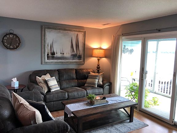 Beautiful Colonial Bay condo #20 with carport # 21. Wonderful view overlooking Lake Manitou from one of two balconies. New furnace & CA 2017, remodeled full bath. All appliances including washer & dryer. Nothing to do but move in and start enjoying the lake.