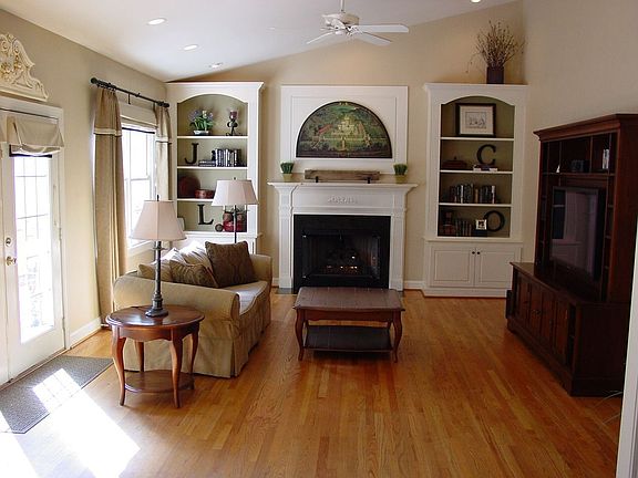 Interior - First floor has sanded-in-place hardwood floors and 9' ceilings throughout. 16'x20' Family room has wood/gas fireplace and 13-foot vaulted ceiling. Living room opens to dining room with custom paint, window treatments, and large bay window to back yard. Study on first floor opens to foyer with double french doors and recessed lights. Kitchen has corian counters with integral sink and upgraded 42" oak cabinets. Kitchen, breakfast and family rooms are open to each other. 2nd floor has four bedrooms and 2BA, with new master shower and fixtures. Master bedroom has 10' tray ceiling and a large walk-in closet with palladian window. Ground level walkout lower level has several large windows and double doors to a huge patio and hot tub. Lower level also includes a large 5th bedroom next to a full bath, an exercise room with 6' double french doors, and a 35x15 foot recreation room with an 11 foot cherry & granite wet bar, gas fireplace and tv well. Every room in the lower level has in-ceiling audiophile speakers and in-wall volume controls. All common area interior and exterior lighting fixtures have been recently upgraded with brushed bronze. Recessed lights with dimmer switches in basement, kitchen, family, office, and master BR. Media and network wiring to most rooms. DirecTV HD satellite dish and attic antenna. Exterior - Fully fenced backyard has an elevated 16'x20' Trex deck (off the family room), several huge 50+ year old trees, good privacy landscaping to both sides and back, a large hot tub, and a stone faced sitting wall along a huge 500 square foot flagstone patio. A landscaped sidewalk wraps around the side of the house to the driveway. The houses behind are approximately 100 yards away separated by evergreens for year-round privacy. Neighborhood Description 14 homes on a cul-de-sac Families, professionals, empty nesters, retirees Kids ranging from 3 to 16