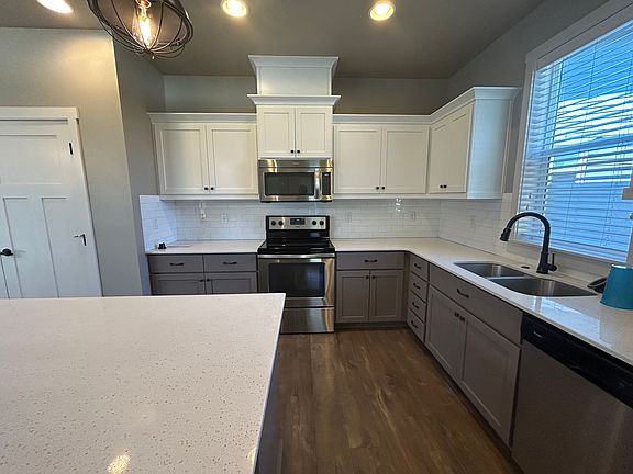 Newer 4 bedroom, 2.5 bathroom home in a nice neighborhood. This home has 1990 square feet and a 2-car garage. One bedroom and half bath on the main floor. Master suite includes a walk-in closet, walk in tiled shower and double vanity. Kitchen has beautiful quartz countertops and stainless steel appliances. Two story living room ceiling and open staircase. Home includes refrigerator, washer and dryer. Large backyard with covered patio, raised garden beds and automatic sprinklers. No rear neighbors! Convenient location less than 3 miles to the Village, restaurants and easy freeway access. Pets considered. Tenant is responsible for all utilities including electric, gas, water, sewer, trash and irrigation. $75 app fee. Zillow applications will be accepted for prescreening only. There will be a one time admin fee due at lease signing.