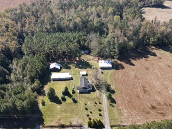 10.23 acres, Ideal Hobby or Horse Farm. 1560 sq ft Home, 3 BR, 2 B (Master bath 10X14). Open kitchen, dining room and living room. Large den with stone fireplace-wood burning. Front porch 23.9’x8.0’ and attached 1 car garage. Screened back porch 12.6’and adjacent open patio. Quiet rural area, 3 miles from city of Loris and 22 miles (30 min) from North Myrtle Beach, SC. Large garden area. Partially wooded, ideal for hunting deer or turkey. Shrubbery, flowering trees, pecan trees and fig bushes. 2 large tin buildings 60.2’x23.9’, 42.7’x43.8’. Storage 8’x12’. Large wood building 32.1’x38.3’. Detached metal carport 18’x20’. Tin shed 36.2’x19.3’.