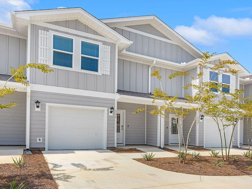 Welcome to Jake's Landing townhomes. This move in ready exterior unit is located at 1725 Jakes Drive. This townhome offers 3 bedrooms and 2.5 bathrooms and a single car garage. On the outside of these units, you will see quality Color-Plus Hardie Board exteriors, complemented by prairie-style doors and dimensional shingles with a 30-year warranty. Convenience meets security with steel garage doors equipped with openers, weatherproof outlets, hose bibs, and a fully sodded yard where cleared. As you enter inside, you will feel right at home with beautiful EVP flooring at your feet, leading you to the open living room and kitchen or the spacious upstairs. In the kitchen and bathroom, you will find gorgeous granite countertops, white cabinets with brushed nickel hardware, and a full stainless steel appliance package including a stove, microwave, dishwasher refrigerator, washer and dryer. Stay cool with energy-efficient cooling and heating systems, Low-E insulated windows with screens, and ceiling fans in the living room and primary bedroom as well as blinds installed throughout the home. Each home comes with modern Smart Home technology including a Skybell doorbell, Honeywell thermostat, and Smart Switches. An additional convenience is that landscaping and lawn maintenance is included. Rest assured with a ten-year structural warranty through RWC. Located in the lovely city of Lynn Haven, Florida, you are not far from great food, shopping, schools, hospitals, and more. These homes offer easy access to Tyndall Air Force Base (just a 20-minute drive) and the world-famous white beaches of Panama City Beach (20 minutes away).
