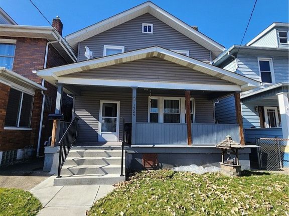 A great front porch, new steps and railings welcome you to this multi story home. Walk into a large, open living room/dining room combo with built in's and a decorative fireplace. The galley kitchen has lots of cabinet space and a door that leads to a small back deck and flat backyard. There is off street parking available behind the home also. There is a first floor bedroom and full bath on the main floor also. Upstairs you will find a huge bedroom with walk in closet and another bedroom as well. Another full bath completes this floor. The attic has been drywalled and is ready for finishes touches to add a nice playroom, office, or additional living space. The home has a newer roof, electrical, and a dry basement. Must see to appreciate!
