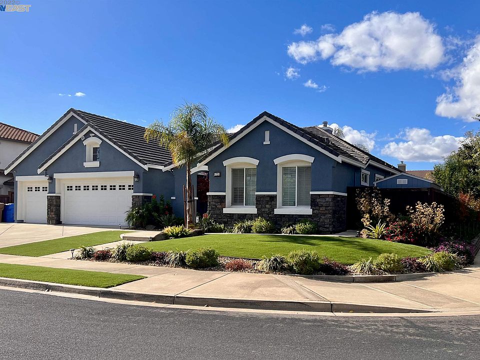 Enjoy resort-styled living at this wonderful single level home in the desirable Montelena neighborhood. With amazing curb appeal, you’ll love the new exterior paint, freshly installed turf, refreshed landscape, fruit trees, gorgeous pool with pretty water bowl accents, newer spa, and the over-the-top covered outdoor kitchen. The 3-car garage, and the oversized driveway allows ample parking. The owned solar allows you to utilize all the fabulous features of your home w/o concern for operating costs. Inside you’ll find rooms for living. There’s a stunning genuine used brick façade in the dining room, and a huge barn door which separates the living spaces for multi-generational use. The updated kitchen has quartz countertops and subway tile. LVP flooring runs throughout the home. With nearly 100 award winning parks and facilities, 19.2 miles of beautiful local and regional trails, and 63 miles of on street bike lanes, Brentwood is also home to excellent schools. Commute routes easily connect you to four major regions (Bay Area, Tri-Valley, Sacramento Delta and the Central Valley). This home and this location are a 10++. No HOA.