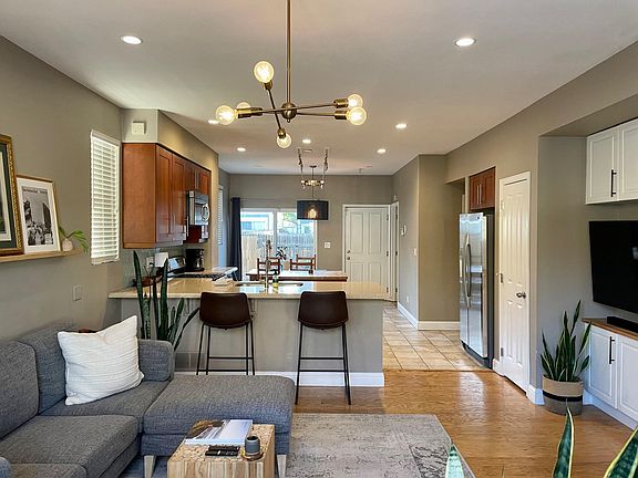 Currently available for a 6 month lease Can be flexible on term, 3-6 months, and partially furnished at no additional cost if desired. Desirable end-unit townhome in a wonderful community walking distance to downtown Edgewater and Sloans Lake! Available September 1st Completely remodeled w/ open concept main level, perfect for entertaining! New kitchen includes 42" cabinetry, undermount sink, undermount lighting, fantastic bar & butcher block island w/ lots of prep space, quartz slab countertops, floating shelves, stainless steel appliances, gas range & recessed LED lighting! Back patio is perfect for grilling and relaxing with planter boxes that grew an abundance of tomatoes last summer. Half bath & laundry room on main level w/ attached garage! Upstairs has 2 bedrooms - the Master Bedroom is complimented by a Master Bath; the 2nd bedroom is HUGE and there is an additional full bath in the hall! Located just a few blocks from Sloan's Lake, Edgewater Public Market, Joyride Brewing, US Thai, and more! Call/text/email Tim to set up a showing! Water, trash, recycling, sewer, utilities, internet, and HOA dues (outside landscaping and maintenance) included in rent! Can also be partially furnished.