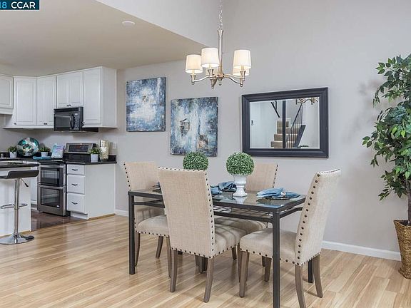 Beautifully updated and spacious 1427 sq ft home ready to move into in. End unit, 1 bedroom and full bathroom downstairs, new flooring in living room, interior recently painted, newer HVAC, new water heater, newer window covering throughout, large walk-in closet in master bedroom, jetted tub in master bath, large bedrooms, vaulted ceiling, inside laundry room, granite counters in kitchen, double oven range, kitchen pantry, recessed lighting, lots of natural light, 2 car garage, and a private updated patio great for entertaining! Walk to K-12 schools, shops, parks and close to BART and freeway commute. Feels like a single family home, not a condo. Perfect for a first time home buyer, investor & 1031 Exchange. Must see!!!