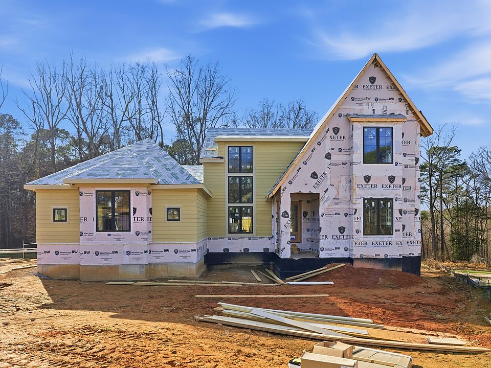 Built by Exeter Building Company, this Transitional European-style home with modern Tudor influences blends timeless design with versatility. Set on a private 1.92-acre lot in the gated community of Grand Highland Estates, it offers a peaceful setting with easy access to RTP and Raleigh—combining serenity with convenience. The main level includes a vaulted owner's retreat with spa-like bath and walk-in closet, plus a guest suite with en suite bath. The gourmet kitchen features designer appliances, a large island, and walk-in pantry, flowing into the vaulted dining area and family room with fireplace and built-ins. Upstairs, spacious bedrooms each include en suite baths and walk-in closets, along with a bonus room and study nook—ideal for work, play, or retreat. Designed for flexibility and future growth, the partially finished basement adds a large rec room and unfinished space with endless potential for expansion, hobbies, or multigenerational living. A covered rear porch with stone fireplace extends the living space outdoors, while a 1-car front and 2-car side-entry garage offer flexible, functional parking. This home blends classic style, space, and practicality in one of the area's most desirable communities.