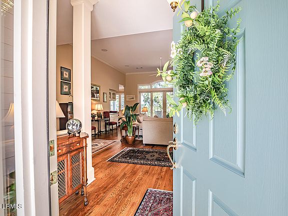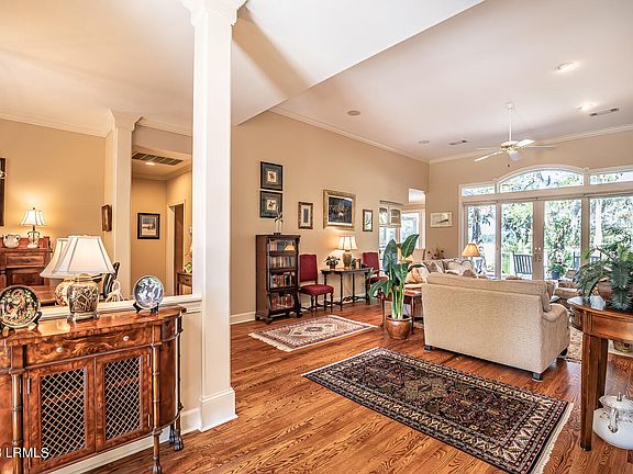 Gracious, light-filled home set amidst a grove of Palmetto trees, located on prestigious, quiet Longfield Drive on Dataw Island. This inviting home features an open floor plan and hardwood floors throughout the main living areas.