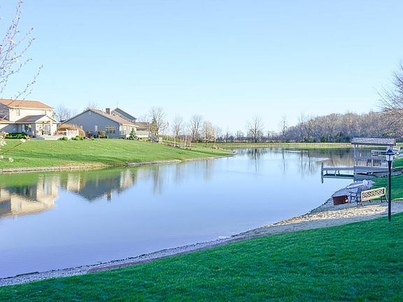 Located on a three acre pond. House has been kept up to date with all the modern looks. Quartz counter tops in kitchen and master bathroom-Two oak custom built-in cabinets in dining area-Newer electric double oven stove-Newer micro-wave custom oak and wood blinds-12' ceilings in living room-¾ inch hard wood oak floors in dining room-Wired for a generator not-new roof in 2014 removed all old shingles-porcelain tile in kitchen-2016 extra plush carpet-wide garage stairway from garage to basement-central vacuum throughout house-closets galore-Full bathroom in basement-Sump has two pumps, water siphon system and alarm-Sanitary sump was replaced in 2015-Two gravity basement drains to the pond-$150.00 a year for Homeowners Associations fees paid for 2017-$71.00 gas budget Ask for additional feature sheet. Immediate occupancy. A great neighborhood where neighbors fish, boat and swim. Be the second owner to this great home
