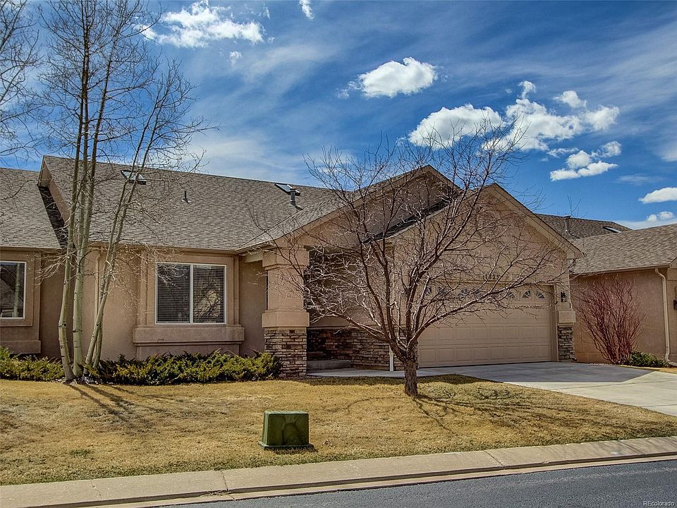 Spacious patio home with mountain views just walking distance from Lake Woodmoor. Kitchen has wood floors, pantry, and breakfast bar that opens into great room featuring vaulted ceilings & gas fireplace. Dining room walk outs to the large covered deck perfect for entertaining. Main level master suite with sitting area, walk-in closet & 5 piece bath. Walk through French doors to office with built in cabinets and vaulted ceiling. Main level is accented with beautiful plantation shutters in LR, master and 2nd BR. Lower level has enormous family room, 2 large bedrooms and ¾ bath. HOA includes all exterior maintenance including roof and stucco; lawn maintenance; snow and trash removal. Must see this gem in a small community just minutes from shopping, restaurants and the quaint downtown Monument.