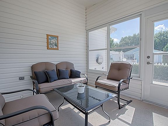 2/2 Turnkey Furnished Colony Patio Villa. Enhancing Volume Ceilings through out. BRIGHT OPEN KITCHEN with a SKYLIGHT. PLANTATION SHUTTERS, BEAUTIFUL TILE & LAMINATE FLOORS, Enclosed EAST facing Lanai. NO BOND, Remodeled Bathrooms. Solar Tube in Master Bath, MOVE IN READY and AVAILABLE for a quick closing. New Roof May 2014, A great location between Lake Sumter and Spanish Springs Town Squares.