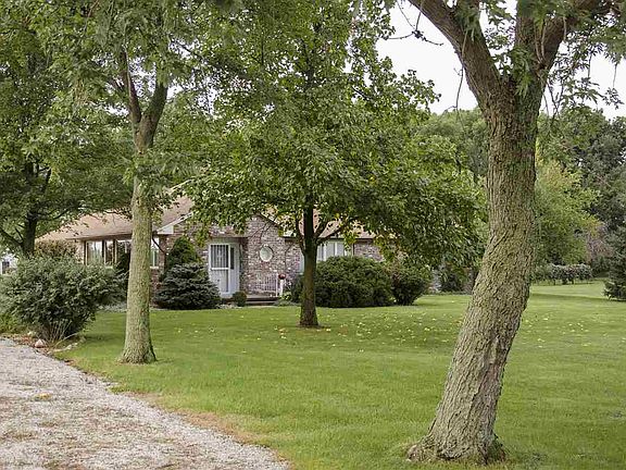 Beautiful custom built ranch sitting on 4.97 acres in Eastern Schools. 2268 sq ft. Cherry kitchen with granite countertops and new appliances (oven to be installed 8/21). Large great room with fireplace, built in entertainment center and bookshelves. 3 bedrooms and 2 baths, large sun room with wooden cathedral ceiling. Newer geothermal. Attached heated 2 car garage and detached 24 x 36 garage with heat/cool, garage door opener and bonus area for mower with overhead door.