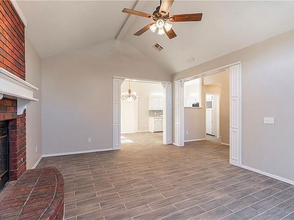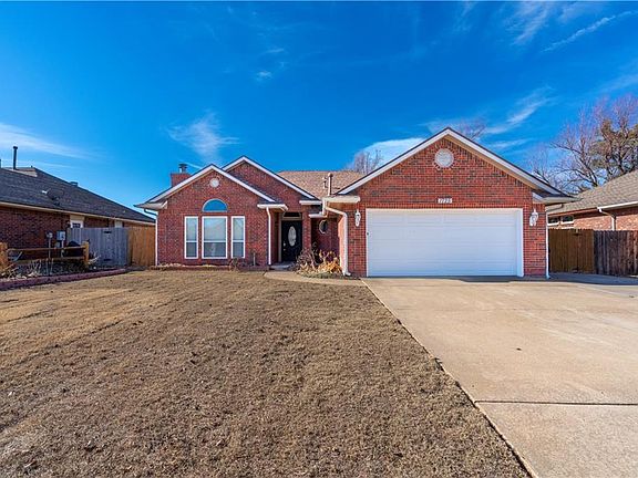 This gorgeous home located in a quiet addition of Choctaw is awaiting its newest owner, and that could be you! As you step inside, you are greeted by the spacious living room showcasing several windows allowing natural light to flood the space, as well as a center brick fireplace with built-in shelves on the side of it. The kitchen is perfect for the home chef and features granite countertops, a breakfast bar, and updated appliances. Your primary bedroom is complete with a private en-suite, including 2 separate vanities, a walk-in shower, and a walk-in closet. The covered patio in the sprawling backyard is just the place to sit, relax and enjoy a beautiful Oklahoma Sunset. You won't want to miss your chance to call this one "Home"! Schedule your private tour today! The seller is a corporation. Please allow up to 3 business days to review all offers.