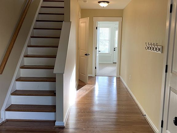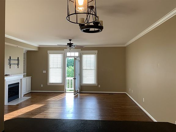 Views from every window of the rear of this lovely Albermarle / Wickham Pond town home! Front load -car garage on entry level plus half bath, laundry, large foyer w/ hardwoods and den / office - Second level boasts open great room w/ fireplace & built-ins, hardwoods, living / dining area, breakfast / eating area off of well appointed kitchen too! Kitchen features refrigerator, dishwasher, microwave, electric oven w/ gas cook top - Third floor boasts a large master BR w/ WIC, full bath w/ double basin vanity & tub-shower, 2 additional bedrooms & additional full bath - Porches front and back, crown moldings, main / entry level room could be office / den or bedroom - HOA covers trails, play ground, pond, park, gym, clubhouse, trash & more!