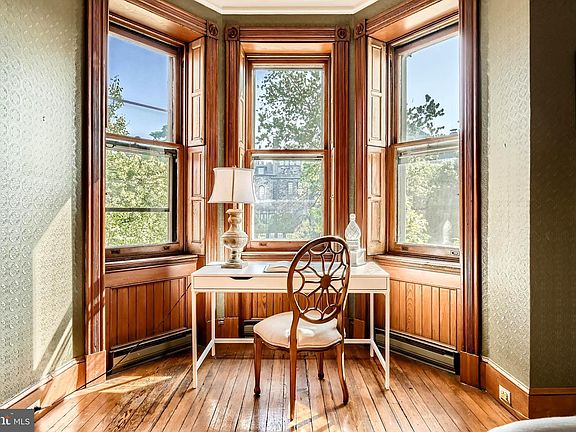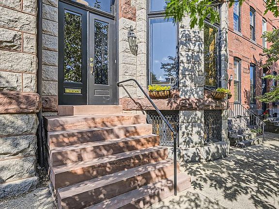 Welcome to a truly one-of-a-kind gem! This stunning 1880s Richardson Romanesque home with its rough-hewn stone and Romanesque arches is extraordinary. This stone exterior is not only visually impressive but requires very little maintenance and is proven to stand the test of time. As you enter, a grand foyer leads to a large central hall with a fireplace and staircase that have hosted many memorable gatherings over the years. The home features four spacious bedrooms, five beautiful bathrooms, and three charming fireplaces, making it the perfect place to entertain friends and family. Located in the Historic Bolton Hill neighborhood, your stunning home is near the Bolton Hill Swim and Tennis Club, Meyerhoff Symphony Hall, Lyric Opera House, Maryland Institute of Art, University of Baltimore. Commuters and day trippers will enjoy easy access to public transportation including the Light Rail. Facing the Park Ave Park, you'll appreciate hearing the soothing sounds of the water fountain and breathing in the delightful fragrance of blooming flowers during the warmer months. The European-influenced kitchen is a chef's dream, with hand-made Mexican tiles on the walls and inlays of 17th-century Delft tiles from Holland. The sun-kissed eat-in kitchen is the perfect spot to enjoy breakfast with a view. This home is a feast for the eyes with its original restored working pocket doors, high ceilings, original crown molding, and gorgeous banisters. The dining room chandelier from an antique market in Brussels adds a touch of old-world elegance. The second-floor living room/library with a fireplace and custom built-ins is perfect for cozying up with a book. The two main bathrooms on the second floor have heated floors, ensuring your comfort during chilly winter months. Meticulously maintained, a recently added Lennox forced-air dual zoned AC system serves to enhance comfort while designed to not disturb the historic quality of the home. It also includes a Nest thermostat and a monitored smoke, water, and radon detection system. The open floor plan on the main floor is ideal for hosting unforgettable parties, and the custom-designed patio and outdoor living space by a landscape architect provide a charming and serene spot to relax and unwind. The enormous bedrooms on the third floor are the ideal place to retire for the evening and feature new carpet. The walk-out basement has tons of storage and a cozy den if you need a bit more time or space to unwind before turning in. This home is truly an exceptional blend of old-world charm and modern amenities. With generous permitted street parking, this home is the perfect place to call your own and share with guests. Come see all that it has to offer and turn the key in the front door to your beautiful future!