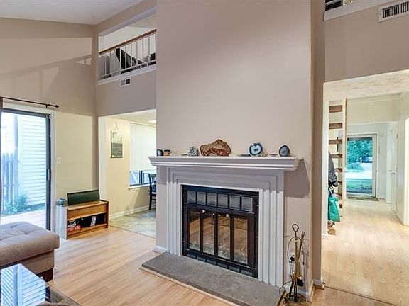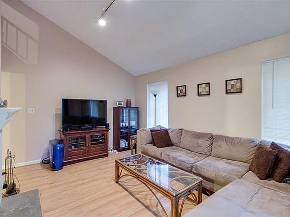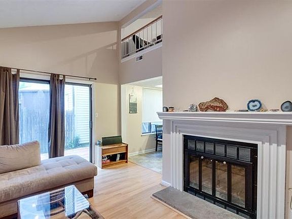 Cute contemporary home featuring open living area with vaulted ceiling, laminate flooring and wood burning fireplace. Eat in kitchen includes refrigerator, electric range and dishwasher. Master bedroom also features vaulted ceiling. The large bathroom has a large double sink vanity and can be accessed from both bedrooms as well as the hall. The second floor loft makes a great sitting room or office. Outside you have a deck that overlooks the large fenced backyard. Additional features include a large storage shed in the backyard plus an attached storage closet in the front and a one car carport.