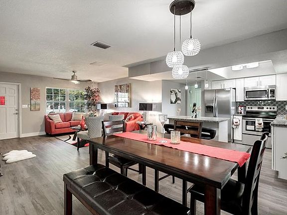 Welcome to this Elegant, recently meticulously upgraded home! Come and see this 3 Bdr/2Bath/1CG centrally located Clearwater home in a quiet street that exudes charm from the moment you step in. A beautiful silver oak hand scraped engineered hardwood floor, flowing from a spectacular, modern, open concept floor plan, with a large living-dining-kitchen combo, to the two other Bedrooms and Master Suite. The chef's dream kitchen has been newly renovated with modern real-wood shaker cabinets, spacious and well lit with an abundance of Granite counter tops, under the cabinets LED lighting and all-New fingerprint resistant stainless steel appliances. Bathrooms are tasty renovated with high-quality materials and stylish modern accessories. The generous master suite includes a foyer leading to his and her closet, bedroom and master bath! New dimensional Roof, vinyl hurricane-proof windows, new two-panel doors, new knockdown texture on interior walls, 5" baseboards, ceiling fans, newer AC system, etc... The house has a lovely curb appeal, with new landscaping throughout. Freshly, tasty painted exterior and interior. It is settled on a large fenced lot with nice back patio, adding a lot of possibilities for outdoor family fun and relaxation and a lot of room for the pets to roam. Conveniently located, with Long Center Recreation just walking distance, also just minutes from the famous Bay Beaches! A Commuter's delight. HOME WARRANTY TO BUYER AT CLOSING! ALL YOU NEED TO DO IS MOVE IN AND ENJOY THIS AMAZING HOME!