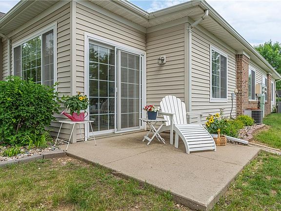 SPACIOUS ONE-OWNER HOME conveniently located off I-35 & Mills Civic Pkwy. Tucked away in a quiet enclave on a cul-de-sac. Nicely landscaped neighborhood. Glistening wood floors grace the open living room, sun room, dining area, and kitchen. Cozy up to the direct vent fireplace under the vaulted ceiling or recluse yourself to the sun room or patio with a beverage for some reading. Sunny bedrooms with an abundance of closet space: walk-in master closet, extra bathroom closets. All windows have pleated shades in a neutral palette. Large mud room/laundry between the 2-car garage and kitchen. HOA fee includes basic MediaCom cable TV. Plenty of wall space for your special treasures.