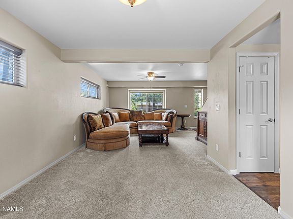 Imagine your dream home nestled in the beautiful ponderosa pines on a quiet cul de sac in Boulder Pointe, one of Flagstaff's most desired communities. As you drive toward the home and take in its curb appeal, you feel your excitement heighten. It's majestic stature, rock accents, three car garage and meticulously manicured yard take your breath away! Without entering you know this is the perfect haven for family, friends, immersing yourself in Flagstaff's stunning natural beauty and living your best life. When you walk through this home, it's everything you hoped. The lower level offers two living areas. One living area is a grand greatroom/dining area. The other is a large, light-filled family room off the kitchen with a cozy fireplace looking into the back yard, creating the open