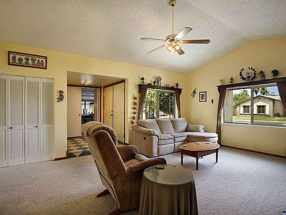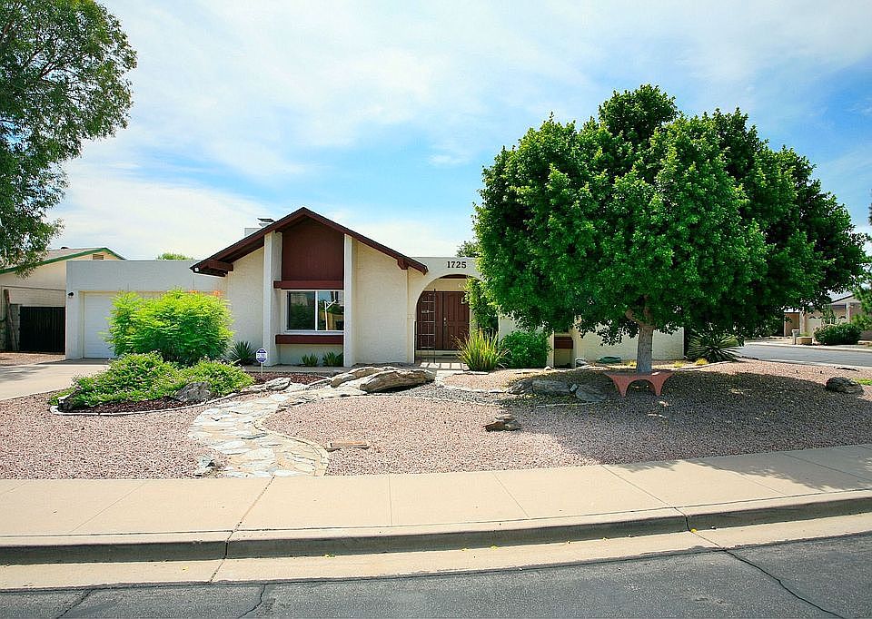 Beautiful 4 bedroom, 2 bathroom single level home situated on a large corner lot. Entry way leads to living room that features vaulted ceilings, custom paint and wood burning fireplace with brick hearth. Open kitchen with oak cabinetry, breakfast bar and nook, and windows overlooking the backyard. Huge backyard with sparkling, diving pool, large covered patio, grassy play area and mature landscaping. Home has newer 2005 roof and new doors and double pane windows. Other details include RV gate, low maintenance desert landscaping in front and great Mesa location near Fiesta Mall with shopping and dining.