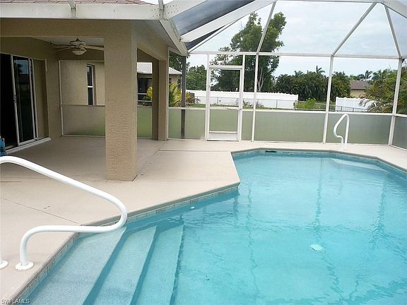 VERY MOTIVATED SELLER! Large pool and spa make this 3 bedroom plus den, 2 bath home one to see. Located on a quiet street, and ideally located close to the heart of SW Cape Coral near Veteran's Pkwy. Features include a very open floor plan with volume ceilings, a kitchen island, and the "Jack and Jill" style guest bedrooms which are connected through a shared bathroom, and also connect to the den. The den can be an extension of the living area, or when the french style doors are closed, it could be used as another guest area, an office/study, or a T V room. Kitchen is very open and has a large island. Porcelain tile in all common, areas as well as the master bedroom and both bathrooms. Tiles have been professionally steam cleaned. Front porch is screened in and has brightly colored double doors. Over sized screened in lanai has a bottom section of the pool cage with a Florida screen for privacy. Yard is fenced on one side and across the back, offering privacy with a row of mature Areca palms. Your beautiful landscaping includes coconut palms. Seller is offering a credit back at closing to assist buyer with any necessary costs.