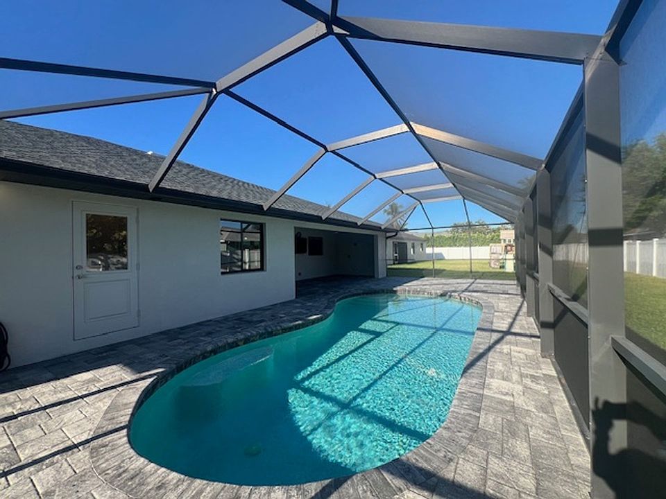 This beautiful home features 4 bedrooms, 3 bathrooms, and a 3 car garage. Enjoy a heated pool with a screened lanai, plus a fully fenced yard for added privacy. Inside, you'll find tile flooring in the main living areas, cozy carpet in the bedrooms, and a modern kitchen with stainless steel appliances. The master suite offers double sinks and a walk-in shower, and the home includes a washer and dryer for convenience. Perfect for comfortable living and entertaining! UTILITIES/SERVICES INCLUDED: Lawn, Pool, Trash AMENITIES INCLUDED: Heated Pool, Screened Lanai, Fenced Yard, High Ceilings, Tile Flooring, Stainless Steel Appliances, Double Sinks, Walk in Shower, Air Conditioning APPLIANCES INCLUDED: Washer/Dryer, Refrigerator, Microwave, Dishwasher, Range PARKING: 3 Car Garage PET RESTRICTIONS: Cats & Dogs allowed with approval through PetScreening GENERAL REQUIREMENTS: + Applicants must be move in ready within 2 weeks + Application fee is $75 per adult + Average credit score of applicants must be a minimum of 600 + Combined monthly income must be at least 2.5x the rent amount + Subject to Credit, Criminal and Eviction searches + Security Deposit may range from 1x-2.5x the monthly rent, based on good credit and rental history, at owner's discretion + In addition to the rent, we require renters insurance that we can provide for $15 per month + All applications submitted must also include a submission to PetScreening + All information provided is considered reliable, however not guaranteed and is subject to change Empire Property Management Cape Coral