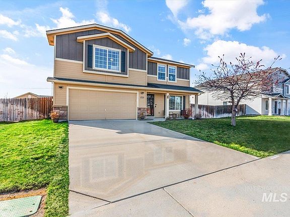 This stunning 4 bed, 2.5 bath residence boasts a spacious bonus/loft upstairs, perfect for a home office or play area. Renovated in 2018, the home features beautiful laminate flooring, a tile backsplash, updated countertops, and stainless steel appliances. The kitchen is a chef's delight with a breakfast bar and large pantry. The master suite offers a luxurious bath, a huge walk-in closet, and ample storage. Outside, enjoy a backyard oasis on nearly a quarter acre, complete with a fully fenced yard, RV parking, and garden beds. Located near three parks, including Colonial Park, this home combines comfort with convenience in a fantastic location with easy access to both the downtown and interstate - an easy 40 minutes to Boise. This home is also part of a great subdivision with NO HOA's.