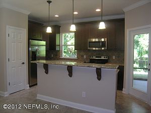 Close to shopping, great restaurants, golfing and boating, this private upscale townhome community is located in the heart of Fleming Island. No CDD fees! Beautiful architectural details - Barrel tile roof, pavered walkways and driveways, gorgeous landscaping. Great open floor plan has screened lanai off Family Room and private fenced back yard. Designer kitchen has breakfast bar island, granite counter tops, stainless appliances, 42'' upper cabinets with crown molding, and pantry. FR has wet bar with wine rack & granite tops. 3 Spacious bedrooms upstairs with large closets. Master bath has double sinks, separate shower and garden tub. 2 car garage and convenient upstairs laundry room.