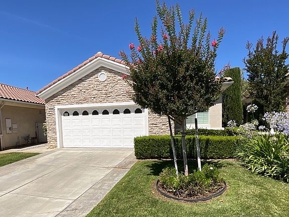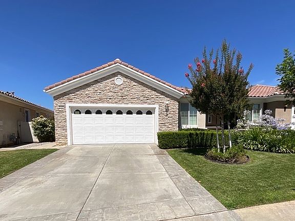 Nestled within the beautiful Oak Valley Greens Community, this 55+ planned development neighborhood offers its residents serene surroundings and opportunities for an active lifestyle. With the elevation being at about 2,600, residents can enjoy scenic views, and this higher elevation provides the community an escape from the extreme heat of the desert communities of the Palm Desert area. This lovely home has nice landscaping and a patio for relaxing evenings or friendly get-togethers. The split floorplan offers privacy with the main bedroom and ensuite on one side of the centrally located office space and the guest room on the other end. Nice inside laundry off of the kitchen. Kitchen has Corian counters and a nice sized pantry. The air conditioner is brand new and works great. The HOA of Oak Valley Greens offers an abundance of indoor and outdoor activities & amenities. The community epicenter is the 18,000 sq. ft. recreational clubhouse facility social and fitness activities. Indoor amenities include fitness center, indoor walking track, table tennis, billiards, a library, multi-use kitchen, and a general use room for various activities like arts & crafts, quilting, scrapbooking, and more. Outdoor amenities include (2) tennis courts, (4) Bocce Ball courts, an outdoor patio, an outdoor pool & spa, and ample outdoor space to walk and bike. Also, nearby is a public golf course and shopping facilities.