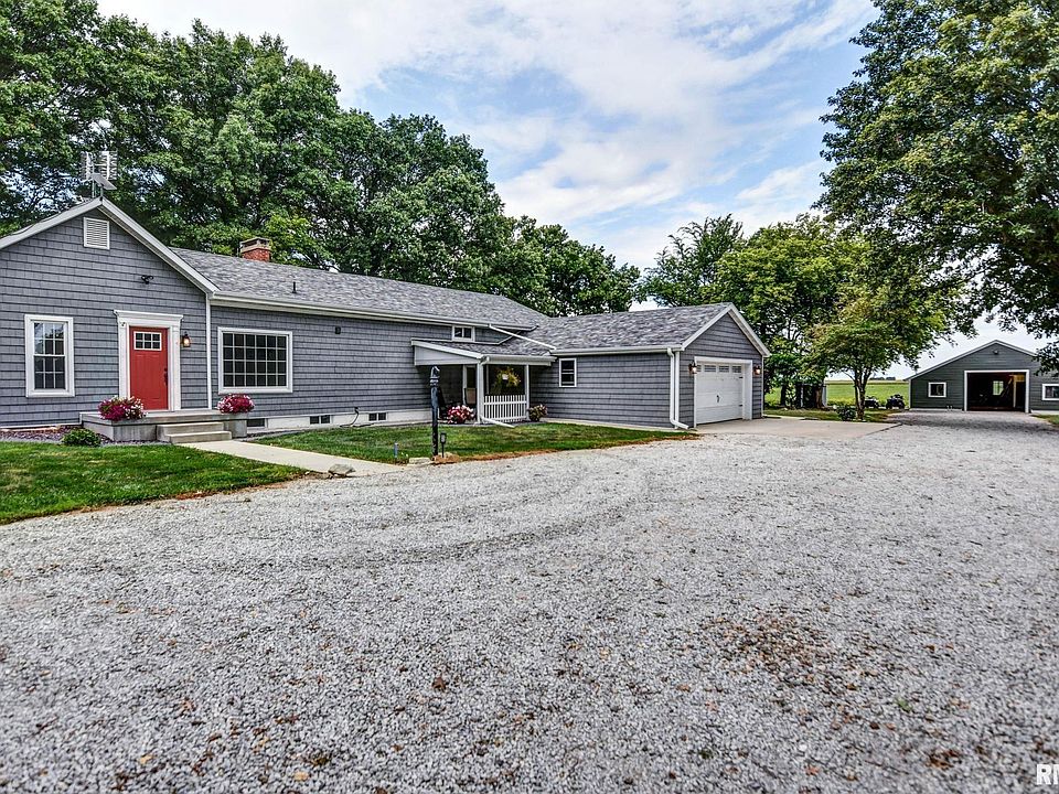 Country Home Paradise on 3 acres just north of Taylorville. This 4 bed, 2 1/2 bath home has it all for the entire family. Recently remodeled inside and out, you will love the exterior, especially the setting with the home in the middle surrounded by spacious yard with mature shade trees and fruit trees. Awesome interior with first floor master bedroom, oak hardwood floors, custom oak woodwork, remodeled main bath with double sinks, formal dining room with fireplace, spacious kitchen with breakfast island eating area and stainless appliances, large first floor family room with oak hardwood floors and french doors leading to 24 x 36 concrete patio. And upstairs is a bonus large 17 x 24 bedroom with walk in closet and 1/2 bath. Great layout for family. Lower level with 1-2 bedrooms, perfect for the teens. Outdoors there is a 42 x 52 livestock barn with water/power and fenced for livestock, 32 x 52 machine shed with concrete floor/power, and 34 x 42 man-shed that is insulated, heated/cooled, with bedroom and 1/2 bath. All mechanicals/roof have been updated, whole house generator is included, underground water spickets in 3 locations, And the solar panel system keeps the power bills low making this estate even more affordable.