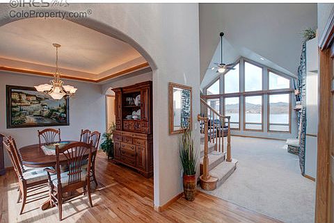 Stunning Lakefront custom built home with one of a kind lake and mountain views. Come enjoy Colorado the way it was meant to be enjoyed. Home features a main floor master, custom Cherry cabinets, newly remodeled kitchen, walkout basement, covered deck and new ground level stamped patio, hardwood floors, fully re-landscaped backyard with outdoor living, and custom large boulder retaining wall. Heated over-sized 3 car garage with water and gas plumbed, and much more.