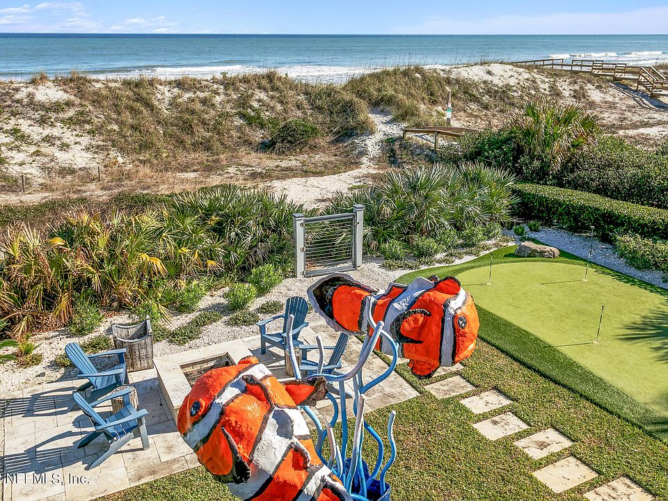 This Is a Stunning Custom-Built Bermuda Style All Block Stucco home with Metal Roof. Hurricane rated windows and doors with Fantastic Views of the Neptune Beach Oceanfront from All 3 Private Bedroom Suites, 4th bedroom/ home office with custom finishes. Thermador appliances, Bianco carrara polished marble in kitchen perimeters with barricato granite island and custom-made granite sink. Bianco Carrara polished marble in master bath vanities. Driftwood plank wood flooring throughout. Custom designed shiplap walls and ceilings. Huge Specially designed Owners walk in Closet. backyard with Covered lanai and summer kitchen and Large Chipping/Putting green for your Golf enthusiast. Outside shower for after the Surf. Room For a Pool!