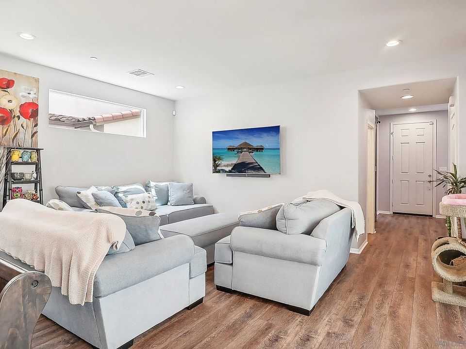 Welcome to Your Dream Home! Located in the highly sought-after neighborhood of Otay Ranch, this newer build boasts 5 spacious bedrooms and 4 full baths. Bid farewell to energy bills forever with your very own Tesla Solar system included! Once inside, you'll discover beautifully upgraded luxury vinyl plank floors that flow throughout the open floor plan, showcasing the builder's premium upgrades and meticulous attention to detail. The main level includes a versatile bedroom and full bath, perfect for guests or multi-generational living. Unique touches like a custom barn door add character and charm, setting this home apart from the rest. The second level features the master retreat, a spacious room, and a large living area perfect for family and friends. The serene backyard offers ample space for outdoor activities and relaxation, complete with fruit trees, upgraded pavement, and pet-friendly artificial grass. Additional features include a two-car garage with finished epoxy flooring, smart home technology, hidden sinks in all bathrooms, window blinds, and an extended granite kitchen island countertop. Enjoy the Ultimate Convenience and Lifestyle! This home is ideally located within walking distance to top-rated schools and two resort-style clubhouse amenities. Take advantage of this rare opportunity to own a residence in this beautiful neighborhood. Your dream home awaits!