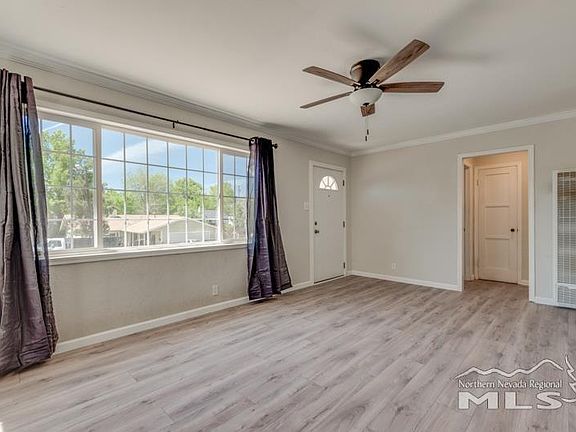 Come see this lovely updated and MOVE-IN ready home in Reno Highlands! New interior updates include laminate flooring, fresh paint, cordless blinds, drapes, refinished kitchen cabinets, resurfaced bathtub and surround, plus more. Exterior includes newly stained deck (not shown), gutter cleaning, and a brand new sewer line. Older updates include windows, water heater, <5 yrs, metal siding (2002), re-roof (2003) with coated steel panels and transferable warranty. Original oak hardwood flooring under laminate.