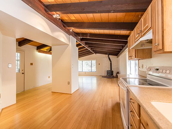 Nature lovers' paradise! Newly renovated w/ bamboo flooring, in kitchen, living & dining areas. Kitchen remodeled w/ new light fixtures, hickory cabinets & hardware, corian counters, sink & fixtures, & stove w/ convection oven. New paint. Upgraded baths and new water heater plus R/O water system. Cast iron wood stove, skylights, interior brick walls & more! Property borders national forest; 1.25 acre horse property may be split. Come view this home before it's gone!