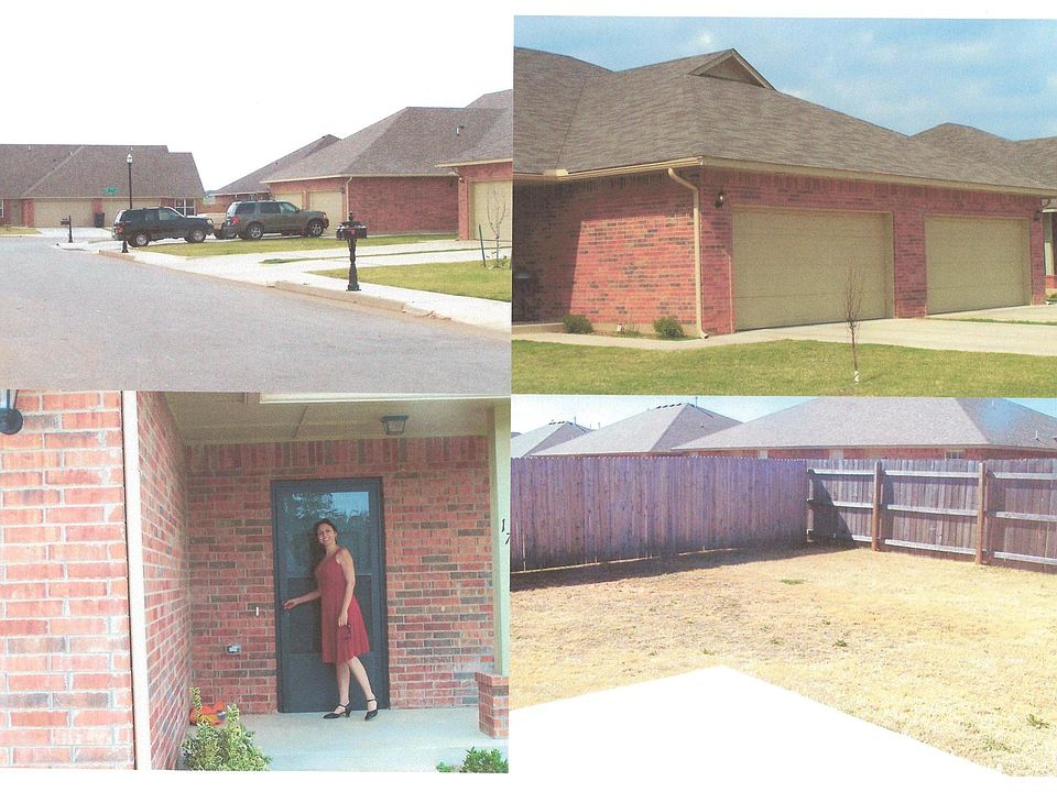 A Duplex MUST CALL OR TEXT Owner 15 min away Mustang/Yukon 1384 sf NO EMAIL Pets $30.00 not each one, puppies must pay $300.00 non-refundable deposit each plus the $30.00 Right below Yukon and above Mustang This Duplex is in a neighborhood of duplexes that are all newly built in 2007 and up-kept. Easy access to I-40 and Airport Road GET MORE FOR YOUR MONEY GO DUPLEX, I DON'T ANSWER EMAIL MUST CALL OR TEXT Nice clean 2007 Duplex with Mustang Schools Right below Yukon but still has Oklahoma City address AMENITIES Tiled bathrooms and kitchen All Brick in all Brick neighborhood 1384 square ft Safe space made with safe room specks Can still have both cars in garage Covered front porch Covered back patio with porch swing 3 bed 2 bath 2 car with openers 2 Bed rooms in back and 1 Bed room in front 9' ceilings Central heat and air Large open kitchen with island and lots of cabinet space and counter space with electric outlets all around, has an open feel with the living and ranch style dine in kitchen Breakfast bar Freestanding electric range Wired for Security system DOES NOT come with WASHER, DRYER or Refrigerator Nice size rooms with electric outlets on each wall Master and back bed room holds king size furniture. front bed room holds queen size 5 closets plus a walk in closet in the master bed room Large shower in master bed room for those that are afraid of falling Blinds throughout Ceiling fans in all rooms Double pane windows Heat pump Screen door Privately fenced Well insulated from sound on other side and from cold from outside All electric, average bill $110 dollars, this is important, some of bigger or older homes can cost as much as $300.00 or more with gas and electric and mobile homes are terrible to heat and cool along with two story homes. Call the Electric Co. and check first. This is a nice place to live and to save for your new home Underground power lines for a lot less chance of power outages in storms On cul-de-sac with side walk and street lights all around Top rated Mustang Schools close also Bus stop for all with in eye sight Ideal location not far from I-40 highway which doesn't have near the slow traffic that Moore and Edmond does. Close to lots of shopping, two different Supper Wal-marts and Out Let Mall all 10 minutes away I the owner live 15 minutes away and have things fixed in a timely manner. This is important no red tape to hear from owners out of town or state. IF THE PLACE YOUR LOOKING AT TO MOVE IN IS A MESS, DO YOU REALLY THINK THEY ARE GOING TO FIX ANYTHING AFTER YOU MOVE IN Low deposit, this is a good thing, be careful when you rent a new home or newly remodeled with a high deposit, you can be charged for anything. When your lease TERM is up you rent from month to month and do not have to worry about breaking a lease. This is important if you are building or looking for a new home. To break lease TERM (UNLESS PAYING MONTH TO MONTH) pay an extra months rent with your rent along with a hand written signed and dated 30 day notice. ( SOME PLACES WANT TWO MONTHS OR FOR YOU TO PAY FOR THE REST OF THE LEASE ) Not furnished Tenant pays for utilities, $65 to run credit, criminal, and rental history