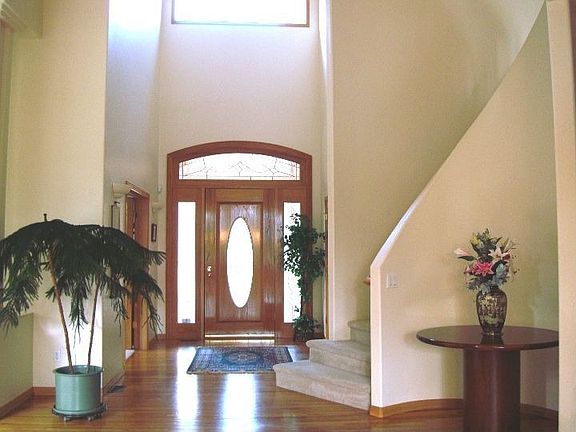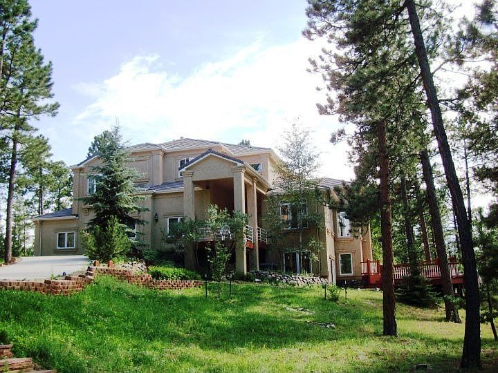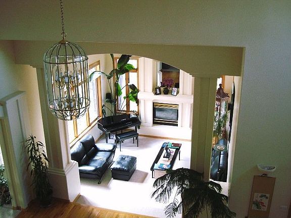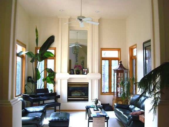 Classy 6632 sq. ft. custom walkout 2-story 0n 2.51 acres of towering pines with professional landscaping & lots of sunshine. MAIN LEVEL: Elegant 2-story entry with hardwood floor & leaded glass front door & sidelights. Sunken 2-story living room with gas log fireplace, floor-to-ceiling windows & arched entrance with 2 pillars. Formal dining room with coffered ceiling & crown molding. Large eat-in kitchen with granite tile counter tops, hardwood flooring, gas cook top, subzero frig, wine cooler, 9 ft. ceiling & sunny bayed eating nook with glass door leading out to 16x8 rear deck. Adjacent family room with 2nd gas log fireplace, 10 ft. triple coffered ceiling & wall of windows. Office with divided light glass French doors & built-in bookcase. Powder room & laundry room with sink completes this level. UPPER LEVEL: Huge master suite with 3-way gas log fireplace separating sleeping area from bayed, step-up sitting area, wet bar, glass doors opening out to private 2nd rear deck, 15x11 his & hers walk-in closets & 17x15 5-piece master bath with jetted tub & double headed shower. 3 additional bedrooms all with walk-in closets & direct access to either private or Jack & Jill bath. WALKOUT BASEMENT: Huge open area combining media area with entertainment center, built-in T.V. & surround sound, with exercise area, 2nd family room with 4th gas log fireplace & built-ins, huge wet bar & glass doors opening out to 48x12 2-tiered deck with hot tub. 5th bedroom with double closets & 5th bath completes this level plus approximately 150 sq. ft. of unfinished storage completes this level. OTHER FEATURES INCLUDE: Dual central air systems*Security system*Intercom*Dual hot water heaters*3 furnaces*Central vac*All ceilings 9 ft. to 20 ft. high*Casement windows*Solid wood 6-panel doors*Built-in speakers in media & dining rooms*Oversized & finished 4-car garage*Paved circular driveway*3 decks & flagstone pati