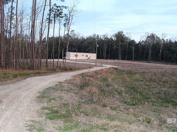 Looking for acreage with a mobile home? Here it is! 14 acres of cleared and fenced land with a 16 x 80, 3 bedroom/2 bath 2005 mobile home. Mobile home includes a garden tub with a separate shower and double sink. Kitchen is spacious with dining area. Property is on well water and septic tank. Live in the mobile home as you build your dream home. Then, use the mobile home as rental property. Bring your horses! There are immense possibilities! Great location just miles from I-10 and the Baldwin Beach Express. Enjoy the country setting that you have been looking for. It is located on a private, gravel, gated driveway. All appliances are included, and there are no restrictions. Agent is related to seller.