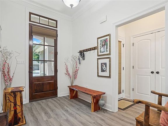Perfection! 3BR/2BA home (1489 sf living area) PLUS a guest house with 1BR/1BA (485 sf living area), situated on 3 lots (about 1 acre), fenced. This home offers Wood Plank Vinyl flooring throughout (tile in Baths), split floor plan accented with tray ceilings, crown molding. Kitchen boasts custom cabinets, granite counters, breakfast bar, stainless appliances including a beverage cooler. Inground swimming pool with swim platform. Large rear patio (approx 18 x 35) is great for entertaining. Guest house feature front porch, full kitchen (small refrigerator), spacious living room, full bathroom, tile throughout guest house. Main house: roof is 1 1/2 yrs old. Exterior features: Whole house generator(main house only), Gutters, outdoor shower, fully fenced with plenty of gates, rear-yard vehicle access, cameras front and rear, shed. Foam insulation.