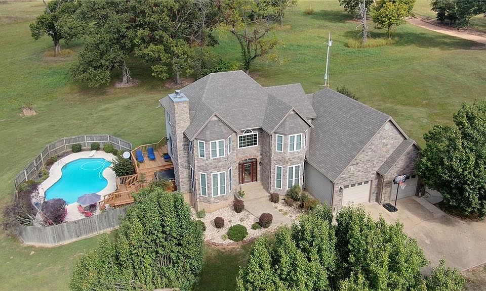 Nestled on a 20 acre parcel this beautiful home has an abundance of natural light, warmth and charm. Upper level balcony's overlook the great room below while the big windows give great views of the land. The decks overlook the gorgeous property and pool. The spacious Master Bedroom has its own private deck. The upper level bonus room is a magical space with a cat walk over to the guest bedrooms. Entire attic over the garage is decked for storage. The roof was replaced in 2019 and the siding and stone replaced in 2017. This home is unique and has plenty of privacy and space. Come see and imagine what you cold do with this property.