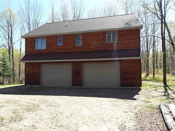 10 acres of gorgeous woods are host to this end of cul-de-sac 1200 square feet "garottage" and is ready for your finishing touches. Being sold as-is. Huge 30x40 foot garage has room for all your toys, cottage has 2 bedrooms with paneling hewn from the property. Vaulted living areas warmed by an efficient wood burning fireplace. Lots of hunting potential and backyard ATV trails. County trails close by. Needs ceiling, floor and some wall finishes, has rough plumbing, electrical and insulation already done.So much potential, amazing views and close to town!