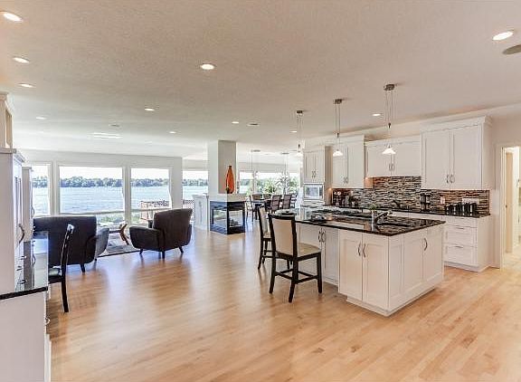 Spectacular south facing lake home! Beautifully remodeled walkout rambler with 82' on Weaver Lake! Open concept floor plan with panoramic lake views. Bright spacious rooms, 4 bedrooms plus office w/ built-ins and theater room. Fresh paint, carpet, & refinished wood floors. Main floor Owner's suite w/ huge bathroom & closet. High-end finishes throughout, SS appliances, & 3 fireplaces. Lakeside garage stall for the lake toys. Sprinkler system & new dock. Don't miss this move-in ready home!, Directions I 94 to Weaver Lake Road Exit, West past Dunkirk continuing onto Weaver Lake Drive, Home on left