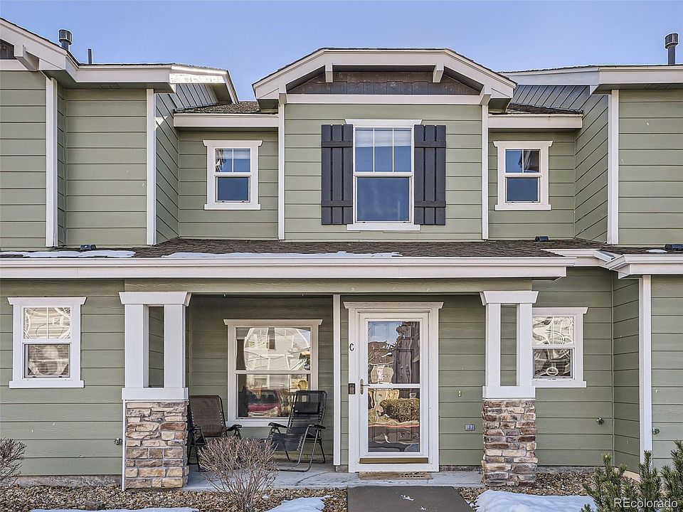 You will love living in the Prairie Meadows Neighborhood of Cottonwood South. You're welcomed into a generous and open living room that connects to the eat-in dining area and kitchen. The "open concept" living area makes this space phenomenal for gathering and entertaining. A large powder room completes the main level of this thoughtful and inviting floor plan. Upstairs the spacious Primary Suite awaits, boasting two full closets and a private en-suite full bath. A secondary bedroom, additional full bath and laundry area complete the upper level. The newer laminate flooring is beautiful and ideal for ease of wear. With 2 reserved spots parking spots located just outside of the front door, this Condo lives like a "Townhome" complete with a covered front porch and a private partially fenced back patio that leads out to a community green belt. You'll find miles of walking trails that connect you to the Cherry Creek Trails, and the nearby playground and park are a perfect place to enjoy all that Colorado offers. This home is close to Trader Joe's, Shopping, Restaurants, and Hospitals. Easy access to E-470 making any commute a snap. Showings Start on Friday 2/16.
