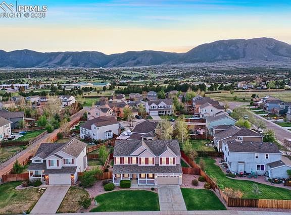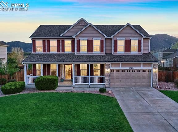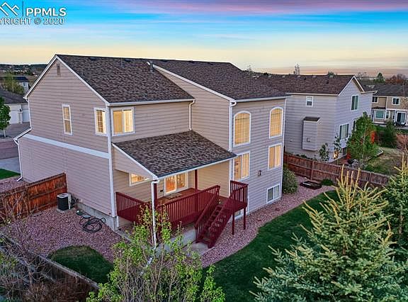 This beautiful 5-bedroom, 3.5- bathroom home is located in Santa Fe Trails, near Historic Downtown Monument, with AMAZING Mountain views. On the main level, you're greeted by formal living and dining rooms, a separate office, a large eat-in kitchen with island & pantry, and 2-story Great room with huge windows surrounding a gas fireplace. Walk out to your freshly painted, covered back deck and enjoy the views, or head on down to the fully fenced back yard and tend to your herb garden. The expansive master suite features double doors, vaulted ceilings, a large walk-in closet, and attached 5pc bathroom with gorgeous polished marble floors. There are three more upstairs bedrooms (2 with walk-in closets), a full guest bathroom, and upper-level laundry room for added convenience. The basement is fully finished to include a large family/rec room with wet bar, a fifth bedroom and full bath, bonus/exercise room, and additional storage space. Recent upgrades include new granite countertops throughout the kitchen and bathrooms, new carpet, extended and refinished hardwood floors, fresh paint, and updated light fixtures including a gorgeous crystal chandelier.
