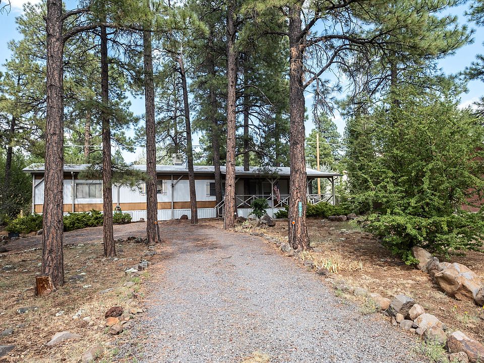 Comfortable single wide manufactured home located at the end of a quiet cul-de-sac on a larger than average lot with many ponderosa pine trees. Large covered front deck which invites one to relax in the shade and enjoy the great weather in the park. Split floor plan and all furnishings left in the unit will convey.