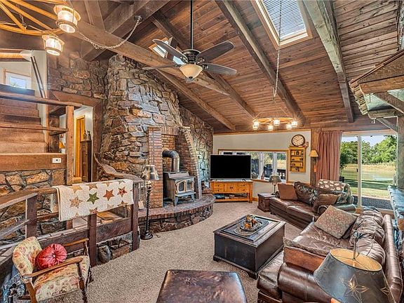 Yellowstone Ranch on the prairie! R&R awaits you! This custom built 4 bedroom, 2 bath home & equine property on nearly 10 acres is a picturesque retreat in rural Jefferson County, complete with one of a kind masonry features throughout the main living space, including a marble entry from the Topeka Capitol Building. The heart of the home is the large kitchen with additional spacious dining space and the family room with beautiful views overlooking the property and a wood-burning stove. The basement features an additional fireplace and storm shelter. Sip your coffee, watch the sunsets or star gaze on the home’s main level and master suite decks! Watch wildlife or go fishing on your nearly 2 acre aerated & stocked pond. Harvest fruit from your orchard which hosts a variety of fruit trees or hunt on your private property - a true outdoor paradise!
