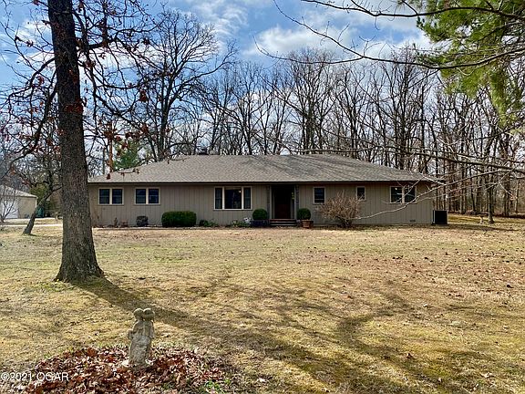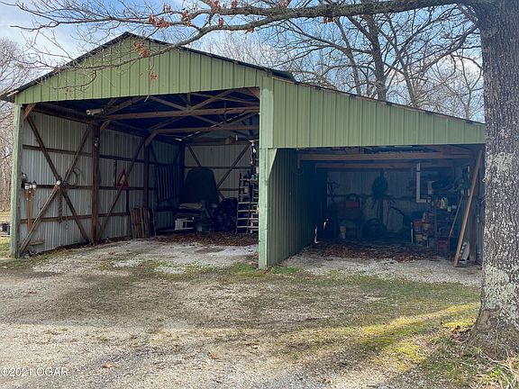 Don't miss out on this amazing property located minutes from Joplin. Just shy of 10 wooded acres, with 1900 sq ft home, and 30x40 shop. In addition there is a 2 bay pole barn, dog kennel, and storage shed. This is a 2 owner home that has been well cared for. Mini split system in detached building, security system, driveway doorbell, and electric dog fence all included. Home has a formal living room that could double as an office or formal dining room. Large family room with fireplace, master suite with french doors out to the private patio. Lots of storage in this well thought out home, and an oversized garage/mudroom to keep you and your pets out of the inclement weather.