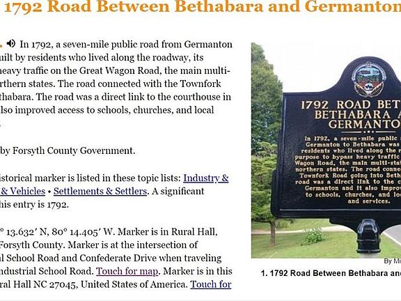 2 acre residential building lot for sale in Forsyth County, North Carolina with 253 feet of frontage on NC Highway 8 and 1.5 miles away from Interstate 74 bypass. The historic 1792 road between Germanton and Bethania is located on the property. Horizons Park is around the corner. Only 10 minute drive to downtown Winston Salem, NC. Also available with adjoining farm having 36 acres with 1887 farmhouse, see MLS # 1113684 Visit listing agent's website for interactive map and video tour