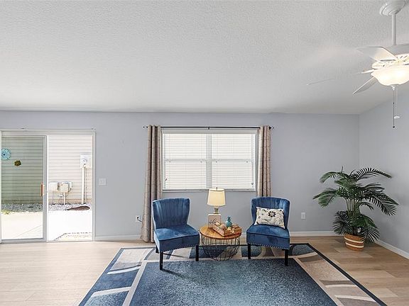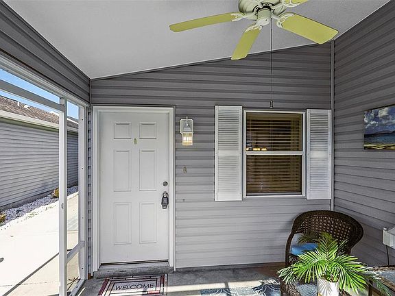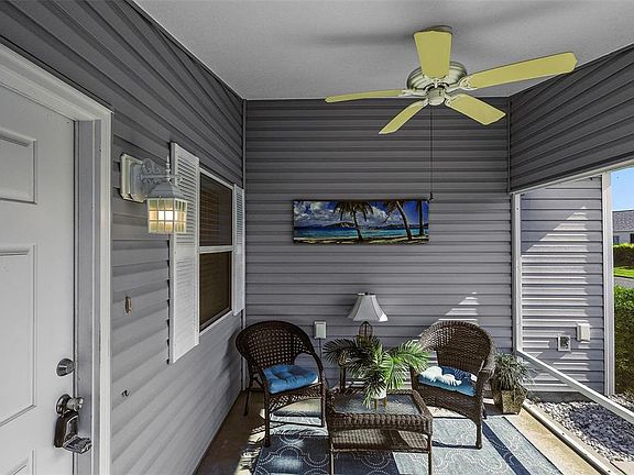 Welcome Home to this beautifully maintained Cabot Cove Patio Villa. NEW ROOF on the way - NEW IMPROVED PRICE ! Located in the highly sought-after Village of Pennecamp, perfectly situated near Lake Sumter Landing and Brownwood for convenient shopping, dining, and entertainment. Enjoy serene views of a neighborhood pond with bench seating just minutes from your door. This light-filled home features VAULTED CEILINGS and an OPEN-CONCEPT LIVING SPACE with LUXURY VINYL PLANK FLOORING in the main areas and pristine carpets in the two bedrooms. The kitchen offers breakfast bar seating ideal for casual dining or entertaining guests. INSIDE LAUNDRY adds convenience, while the SPACIOUS PRIMARY SUITE boasts a LARGE WALK-IN closet with maximized shelving for storage. Recent updates include a 2021 HVAC system, and a BRAND NEW ROOF IS ON THE WAY , ensuring peace of mind. This PRISTINE Patio Villa blends comfort, style, and prime location for the ultimate Villages lifestyle. BRING YOUR OFFER ! CHECK OUT THE VIDEO TOUR BY CLICKING ON TOUR 1 ICON ABOVE !!